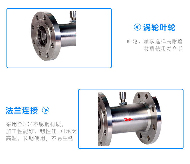 流體流經傳感器殼體,由于葉輪的葉片與流向有一定的角度,流體的沖力使葉片具有轉動力矩,克服摩擦力矩和流體阻力之后葉片旋轉,在力矩平衡后轉速穩定,在一定的條件下,轉速與流速成正比,由于葉片有導磁性,它處于信號檢測器(由yongjiu磁鋼和線圈組成)的磁場中,旋轉的葉片切割磁力線,周期性的改變著線圈的磁通量,從而使線圈兩端感應出電脈沖信號,此信號經過放大器的放大整形,形成有一定幅度的連續的矩形脈沖波,可遠傳至顯示儀表,顯示出流體的瞬時流量或總量。在一定的流量范圍內,脈沖頻率f與流經傳感器的流體的瞬時流量Q成正比。